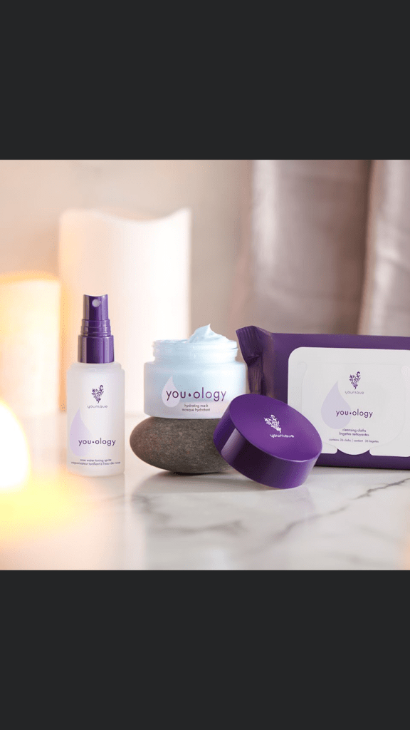 Start by removing your makeup with the YOU·OLOGY cleansing cloths. Next, treat your skin to your choice of YOU·OLOGY mask—including the all-new YOU·OLOGY hydrating mask, formulated with skin conditioning ingredients that help combat the downsides of dry skin. Finally, reset and refresh with a 50 ml version of the YOU·OLOGY toning spritz, available in original rose and limited edition cucumber, lavender, and grapefruit waters.